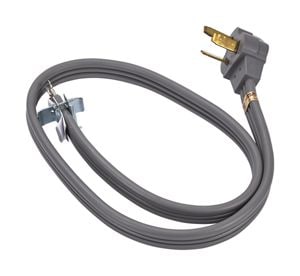 4' Electric Range Power Cord rated 50 A, with 3-wire 3-ring terminal connectors, and right-angle 3-prong plugThis Electric Range Power Cord is a UL-listed accessory that measures 4' L and features a 3-wire, 50-amp design. The power cord connects the range to the wall outlet and supplies electricity to the appliance. Installing this item will require basic hand tools, but no disassembly of the appliance or repair experience. Remember to unplug the range or shut off the house circuit breaker for the appliance before installing this part.