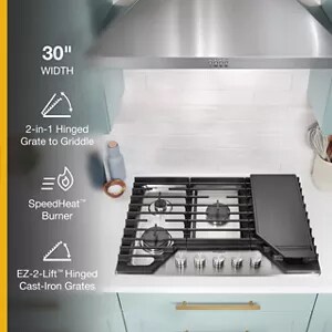 30-inch Gas Cooktop with 5 Burners and EZ-2-Lift™ Hinged Cast-Iron Grates and Griddle