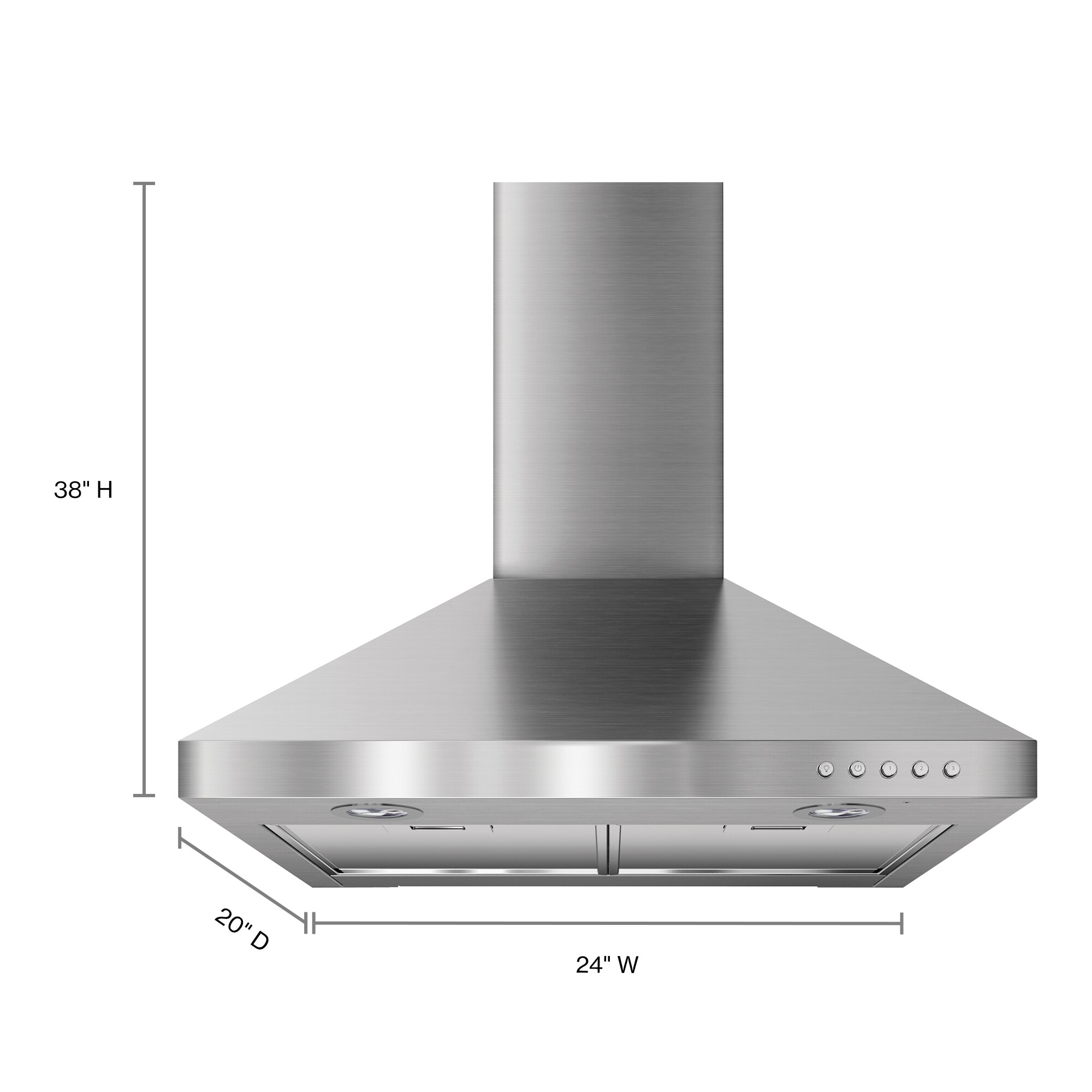 24" Wall-Mount CanopyThis stylish 24-Inch (60cm) hood is perfect above a range or cooktop in a limited-space kitchen. The powerful 300 CFM motor easily clears smoke, grease and odors. And with 3 speed push button control settings, it allows you to easily adjust the system to match your methods of cooking. Convenient filter traps grease and washes with ease. Plus, bright halogen lighting illuminates cooktop activity.