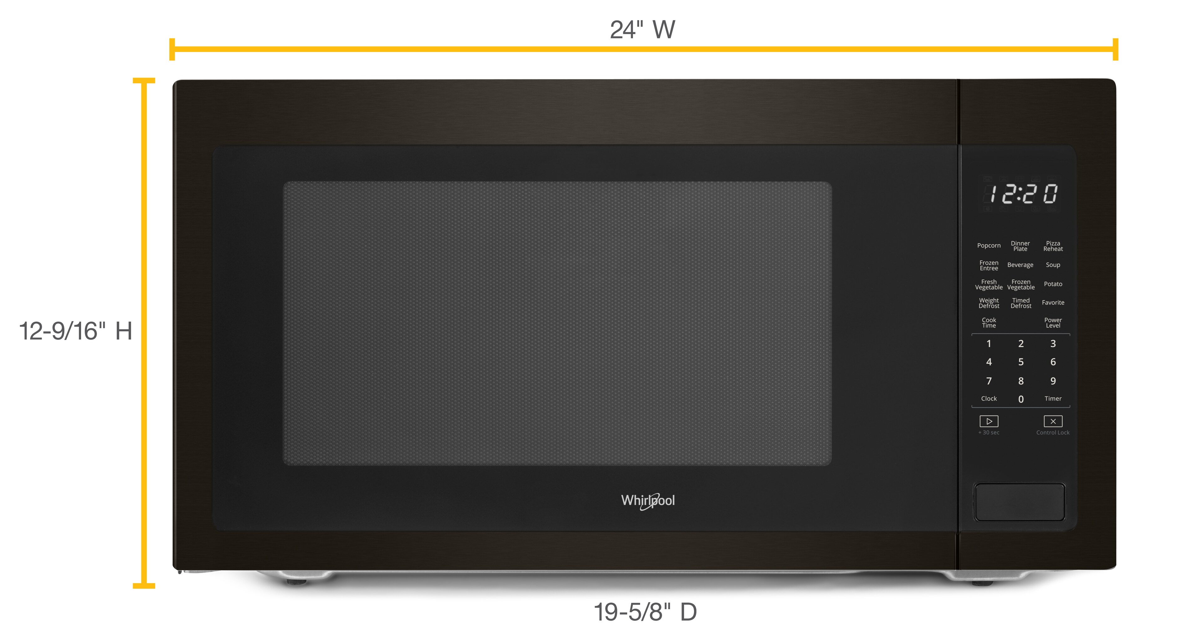 2.2 cu. ft. Countertop Microwave with 1,200-Watt Cooking PowerThis Whirlpool® countertop microwave delivers convenient features that are easy to use no matter who's doing the cooking. Fit dishes of almost any size in the 2.2 cubic feet of Whirlpool brand's largest capacity countertop microwave. Plus, sensor cooking automatically adjusts the cook time so there's no need to guess. From sidesto snacks, enjoy fitting cooking into any schedule.