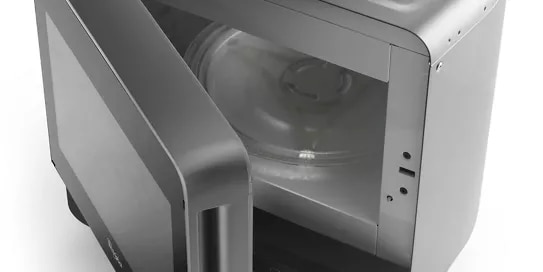 This sleek microwave's unique rounded back allows it to fit into corners, making it ideal for tight spaces like small kitchens and dorm rooms.