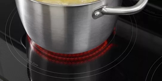 The FlexHeat™ triple radiant element is like having three elements in one. A 6" inner ring is great for smaller pots and pans, while 9" and 12" outer rings make room to heat larger cookware.