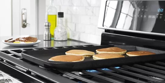 The oval shape of this fifth burner fits large griddles and other longer cookware so they heat evenly on the range top.
