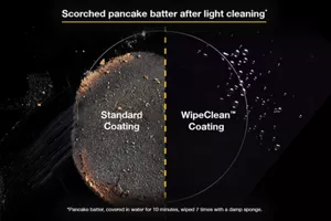 WipeClean™ Coating offers the ultimate easy-clean solution for electric cooktops*. Water alone removes baked-on food and spills; no harsh cleaners required. Simply wet, wait, and wipe with a non-scratch sponge.