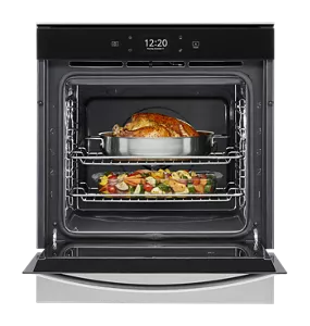 When you’re busy elsewhere, use your smartphone to get dinner started by remotely preheating the oven. Or, when your hands are full, use your compatible voice-enabled device to adjust the cook time or temperature with a voice command.