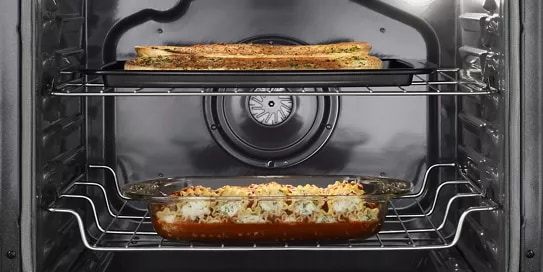 A concealed bake element placed under the floor of the oven creates a smooth surface at the bottom of the oven for easy cleaning.