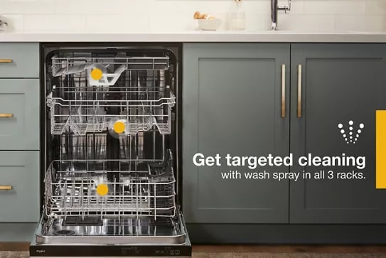 Targeted wash action in all 3 racks ensures dishes come out clean the first time.